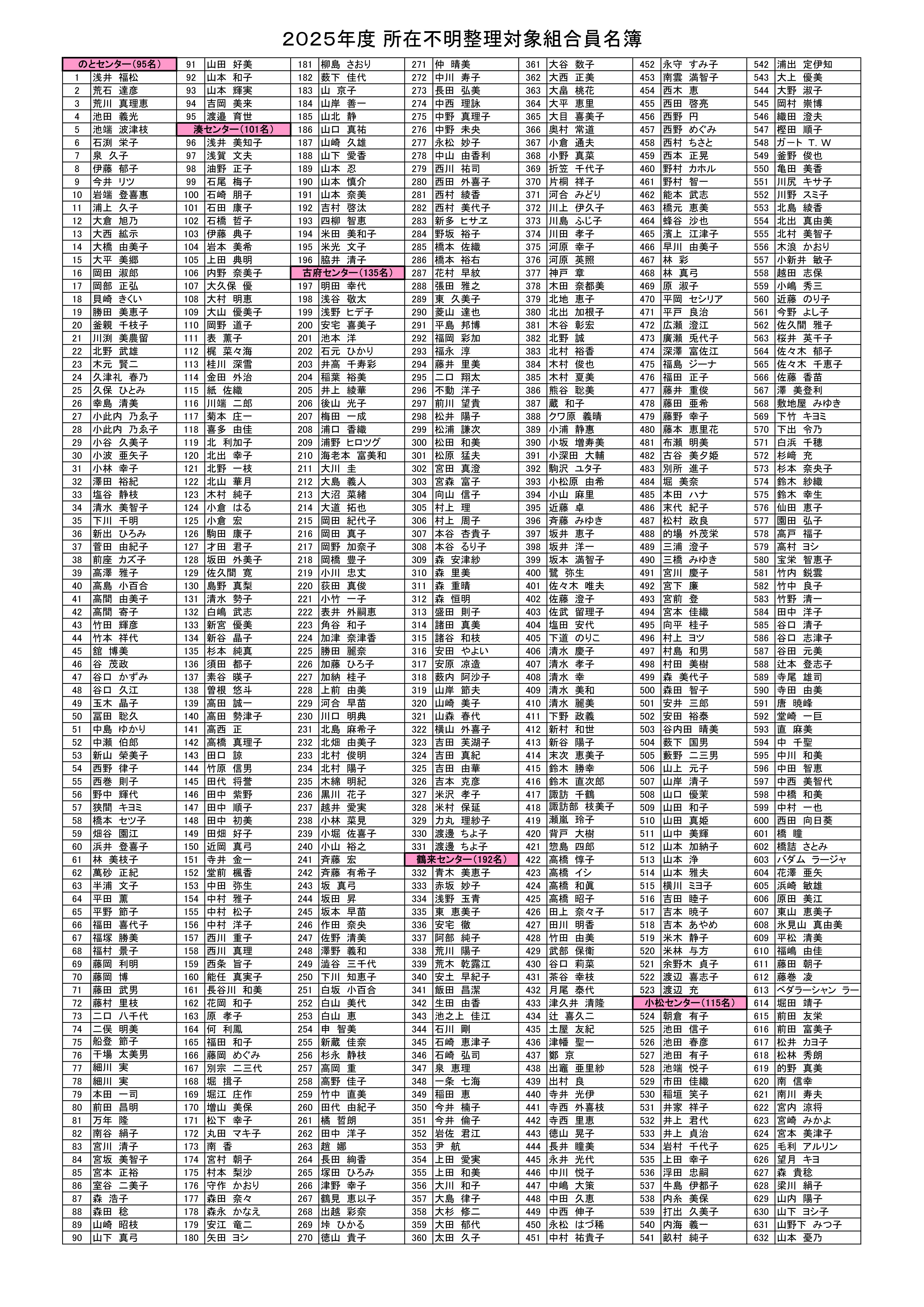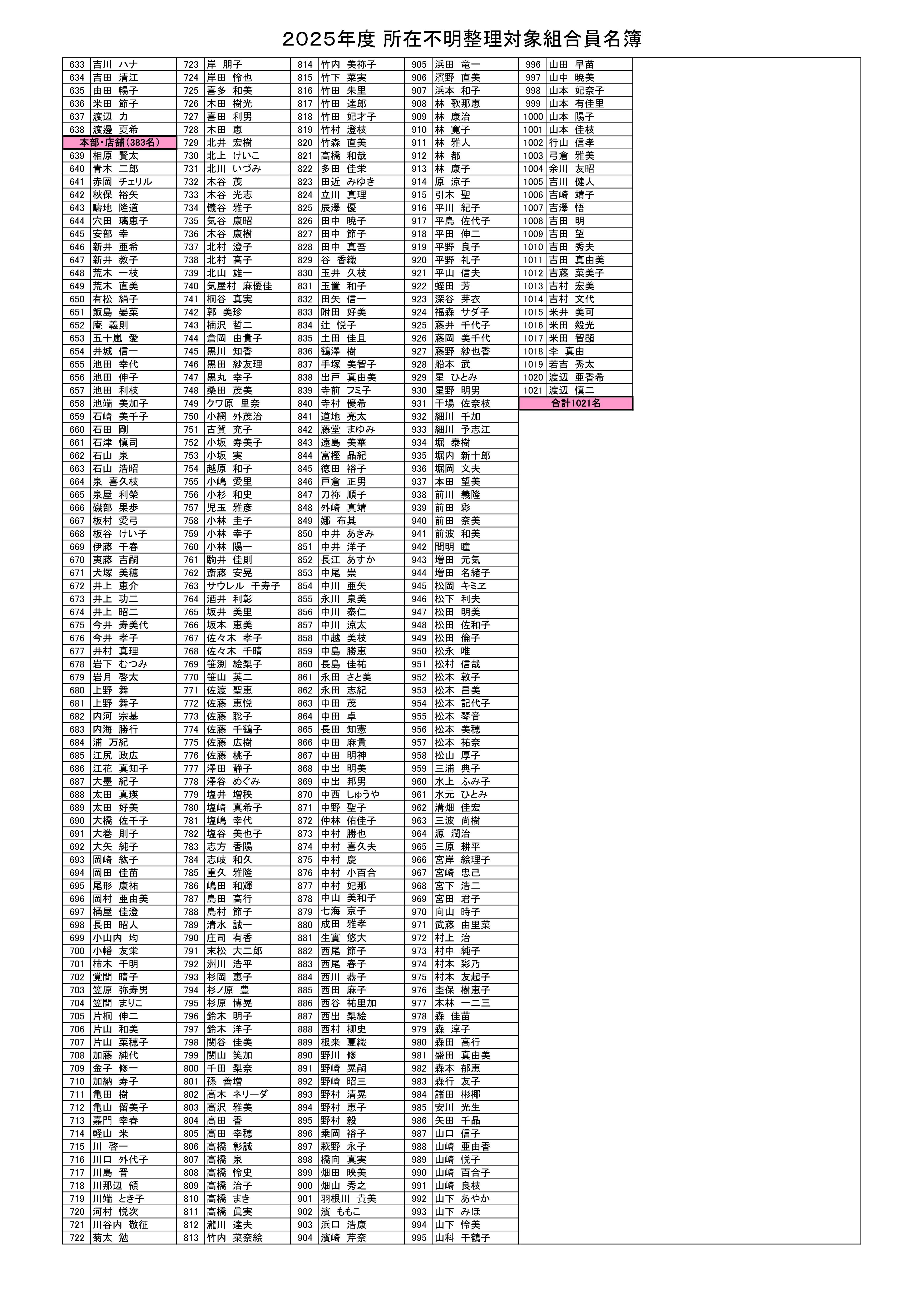 所在不明整理対象組合員名簿-1